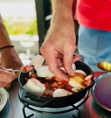 Op onze locatie (in de workshopstudio in Amersfoort) of zelfs bij jou thuis op je eigen kamado. Onze pitmaster zorgt voor inspiratie, technieken én heerlijke recepten, speciaal afgestemd op jullie gezelschap.