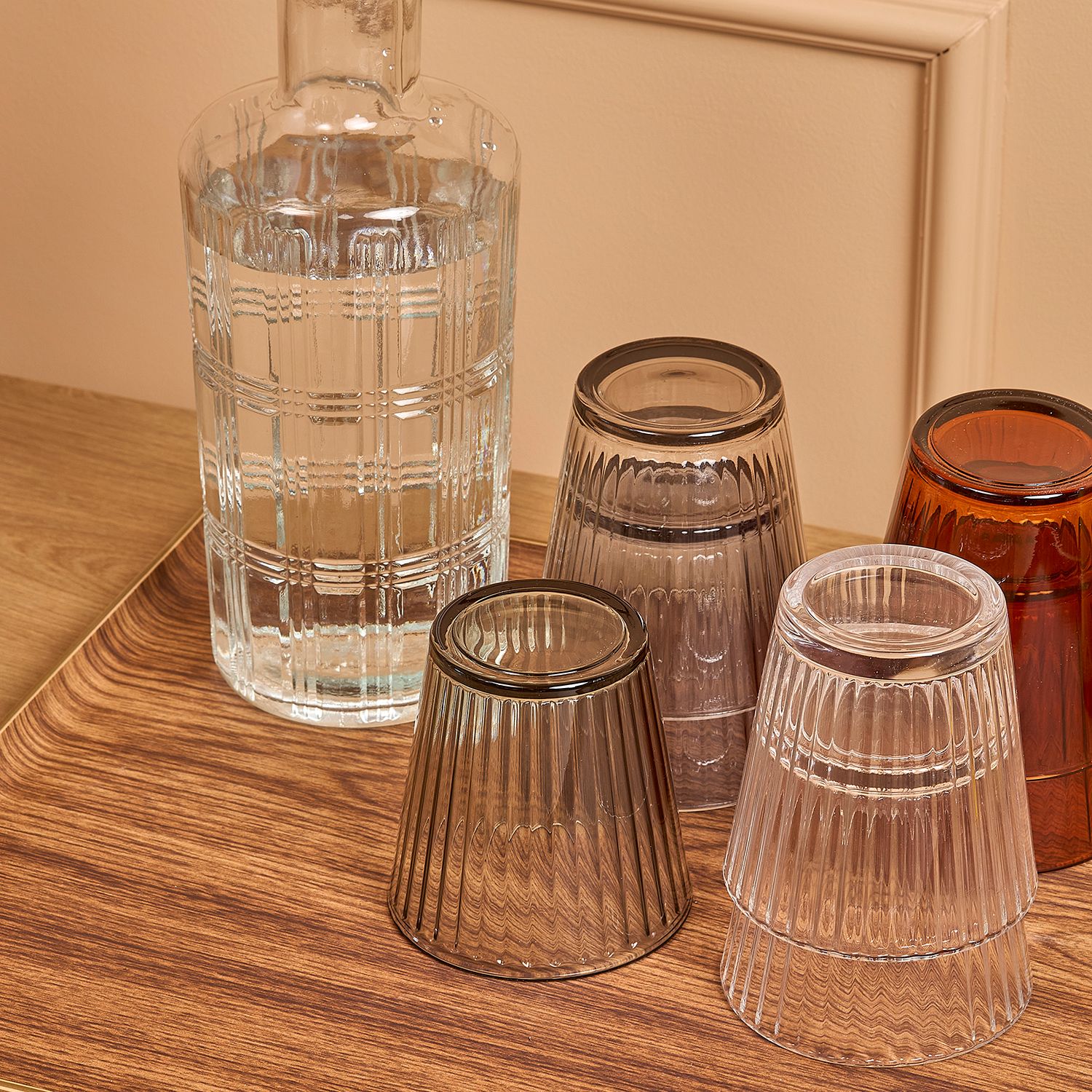 De Luz-collectie bestaat uit stijlvolle, stapelbare glazen. Gemaakt van gekleurd hoogwaardig glas, zijn ze duurzaam, vaatwasmachinebestendig en perfect voor intensief gebruik.