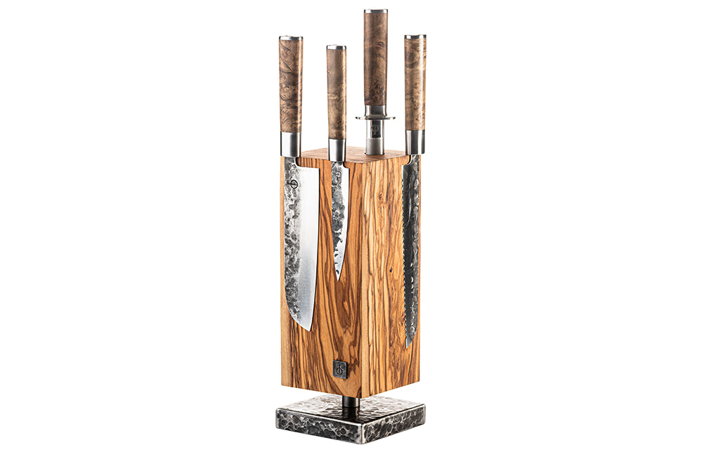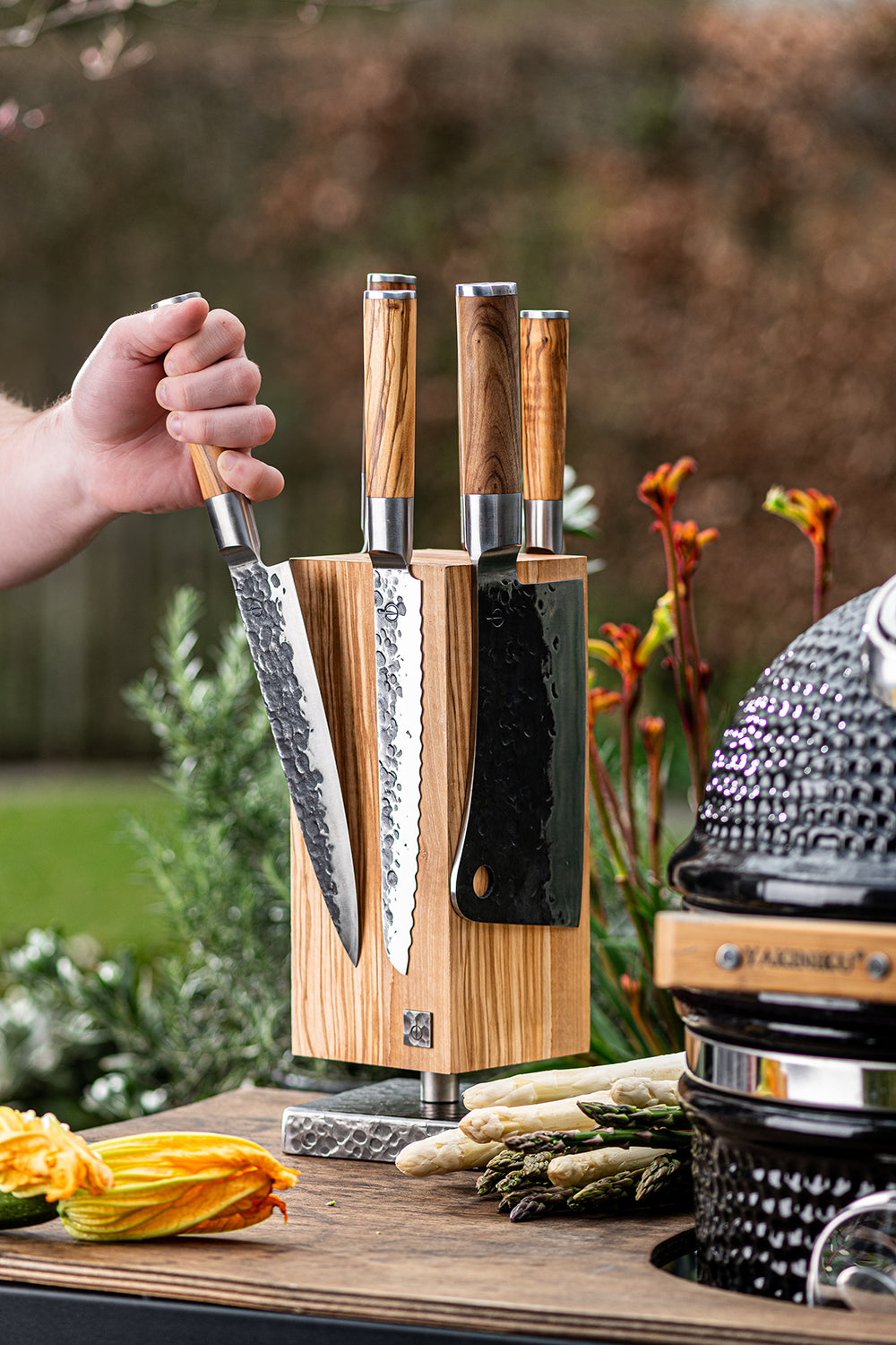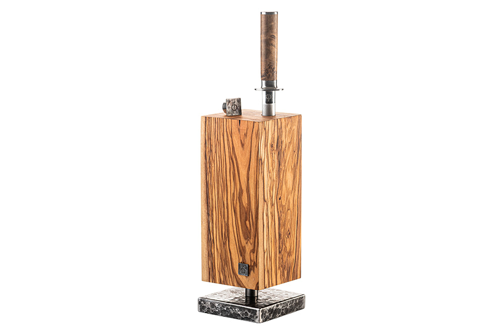 FORGED MESSENBLOK MAGNETISCH ROTEREND OLIJFHOUT