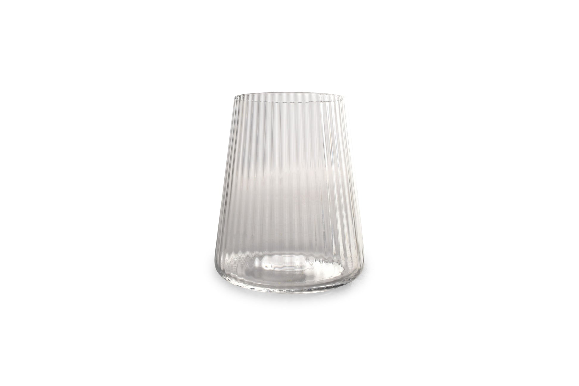 Transparante glazen met reliëf. Prachtig te combineren met de Ray waterfles met hetzelfde reliëf.