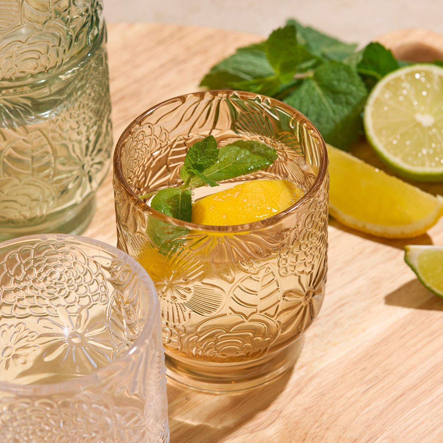 Geniet van je drankje in stijl met het 30 cl amberkleurige glas uit de Flora-collectie. Met glazen voorzien van een bloemenreliëf brengt Flora vrolijkheid in alle tafelmomenten.