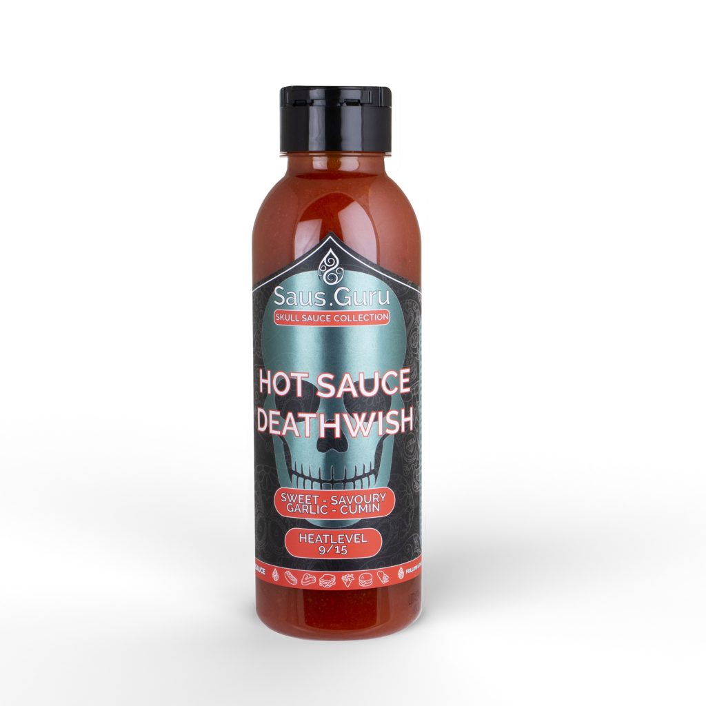 Ondanks het serieuze hitte-niveau brengt Saus.Guru’s Death Wish Hot Sauce een uitgebalanceerde mix van smaakpallet met zich mee. Gemalen komijn en veel aromatische pepers, gebalanceerd door zoete tonen en natuurlijk een flinke hoeveelheid umami, maken deze saus tot een geweldige smaakmaker. Maar wees gewaarschuwd; je hebt een goed getrainde tong nodig om van het smaakpalet van deze saus te kunnen genieten.